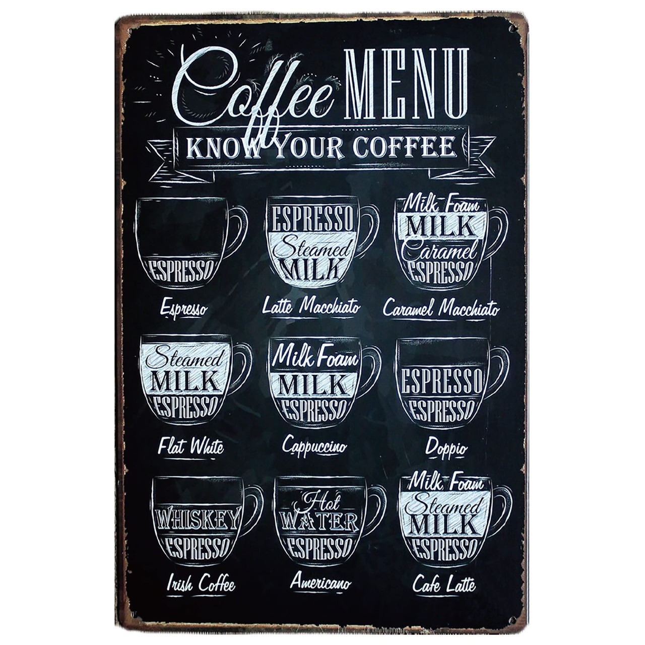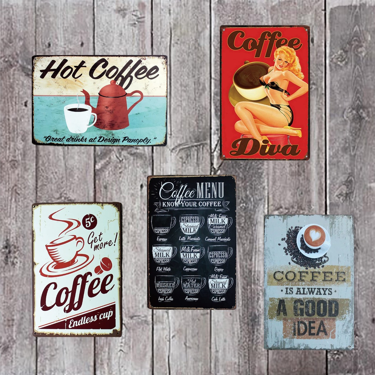 Lanx. ブリキ 看板 コーヒー 5枚セット メタルプレート アメリカン ヴィンテージ風 壁飾 レトロ 雑貨飾り メタル 雑貨 壁飾り アンティーク (コーヒー)