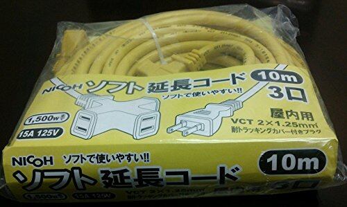 (送料込)NICOH(ニコー) ソフト延長コード 10m 15A 3個口 合計1500Wまで イエロー NCT-1510Y 耐トラッキングカバー付