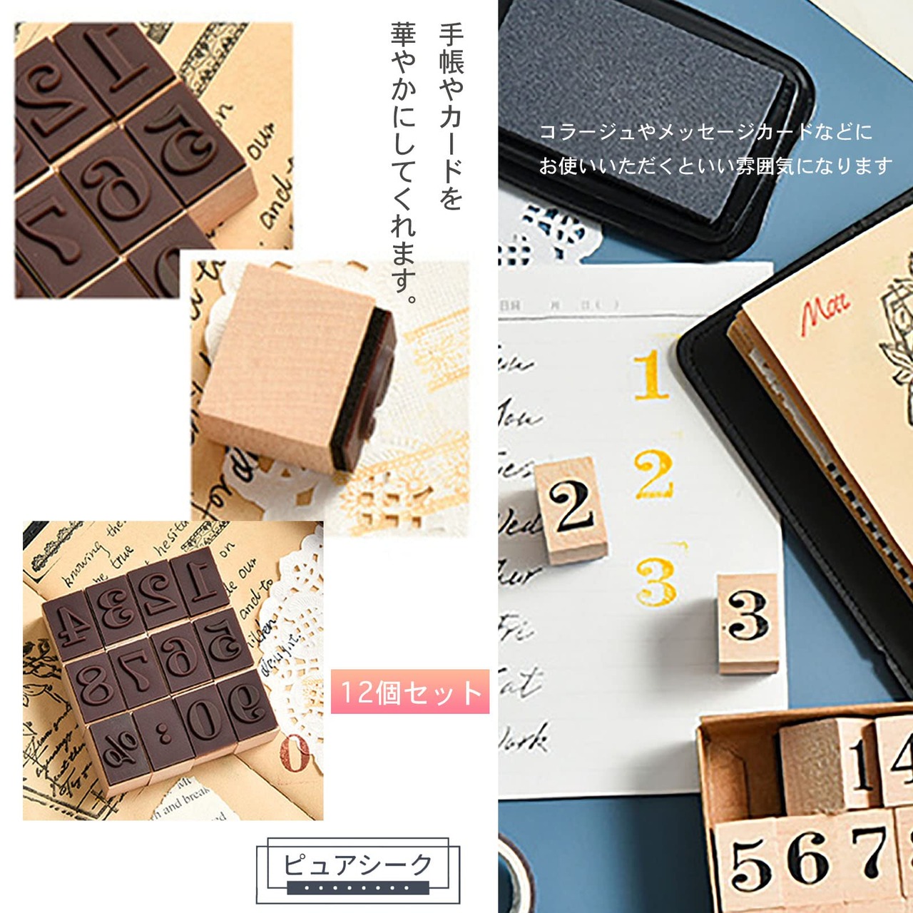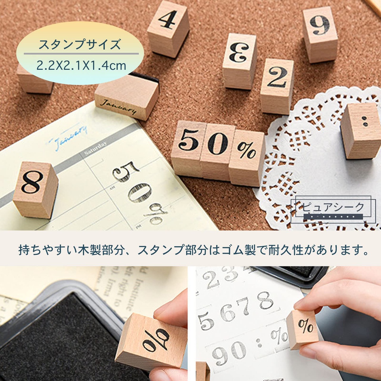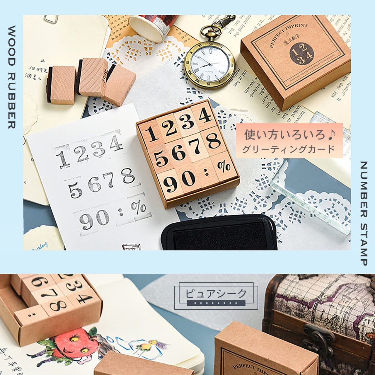 ピュアシーク でかい数字ハンコ 木製 ゴム スタンプセット ハンコ 数字 おしゃれ 大きい スクラップブック スタンプ 番号スタンプ