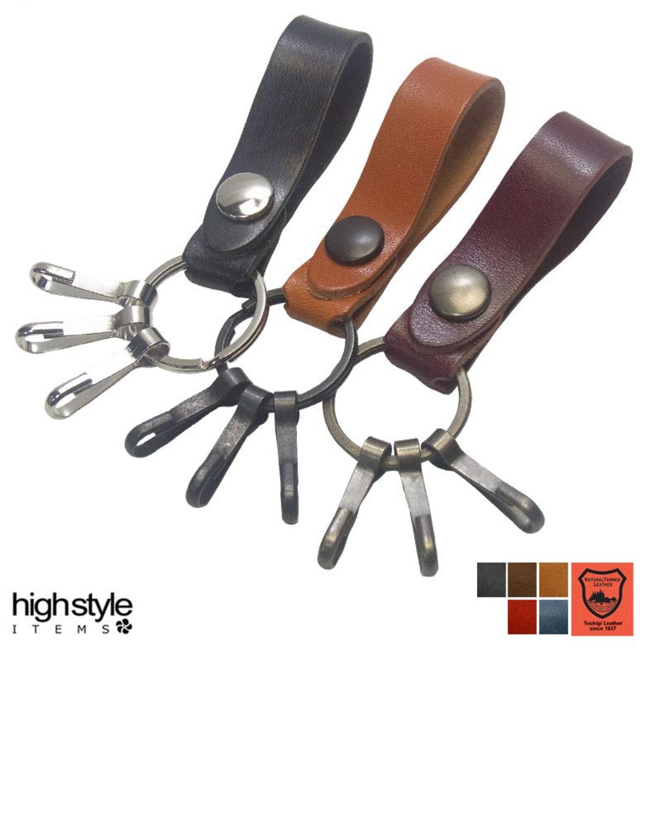 (送料込)highstyle 栃木レザー キーホルダー 日本製 栃木レザー 3連キーフックタイプ ベルトループキーホルダー