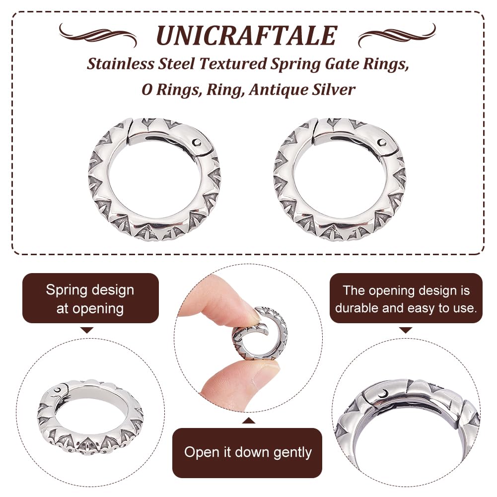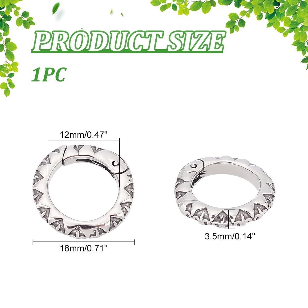 UNICRAFTALE 1個 カラビナ 丸型 18mm キーホルダー スプリングクラスプ 304ステンレス鋼 ゲートリング アンティークシルバー スナップクラスプ O型クラスプ リングクラスプ 留め金 金具 レザーバッグ バックルキーホルダー アクセサリーパーツ DIY用品 副資材