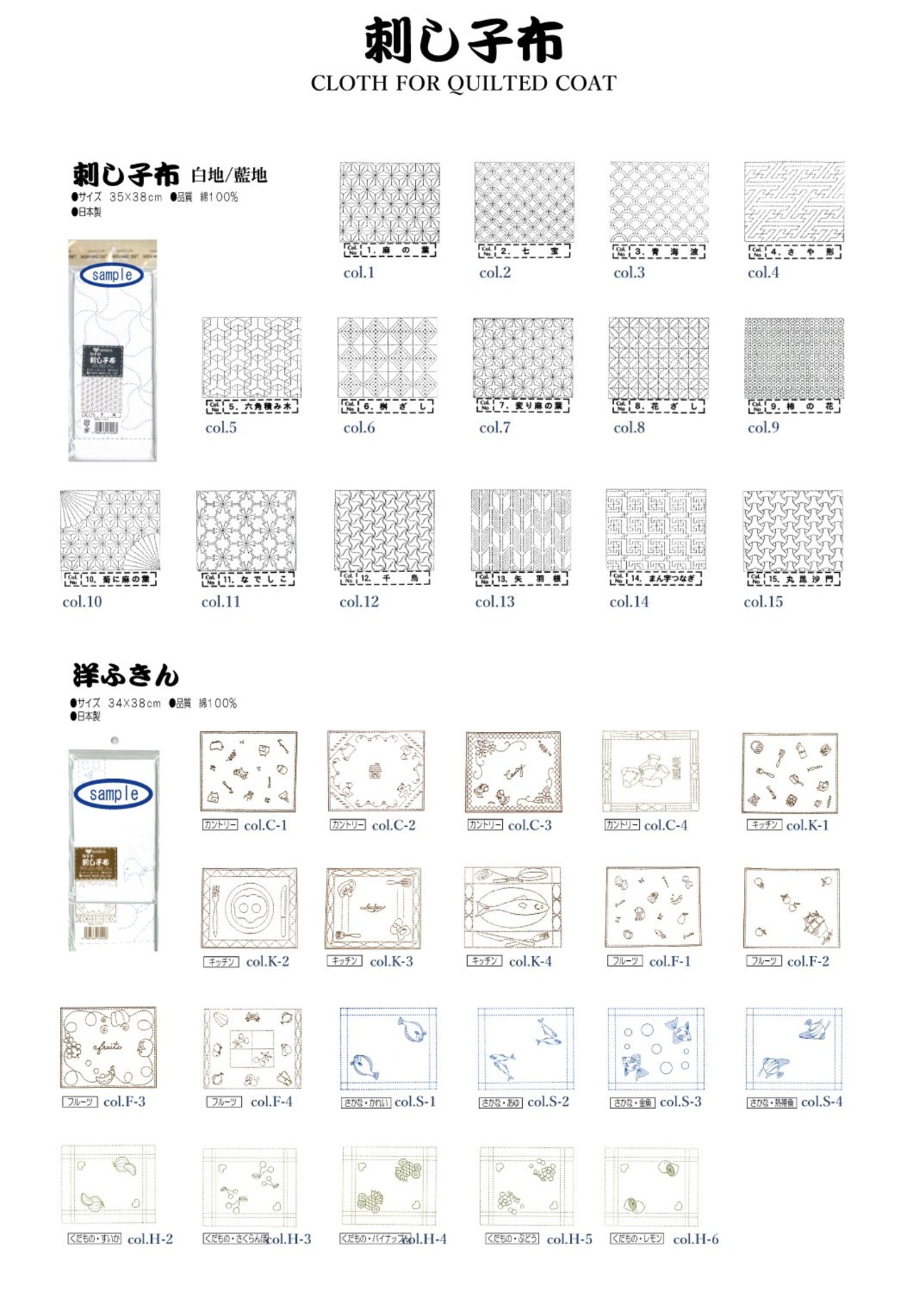 生地には図案がプリントされており、布に図案を写す手間がはぶけ、また針目が揃いやすくなります。