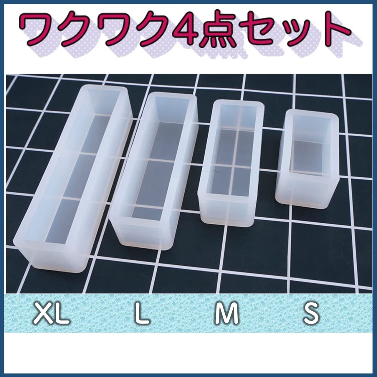 【4サイズセットで使いやすい】S・M・L・XLの長方形シリコンモールド4点セットで、作品サイズに合わせた使い分けが可能です。アクセサリー作りやクラフトにぴったり。