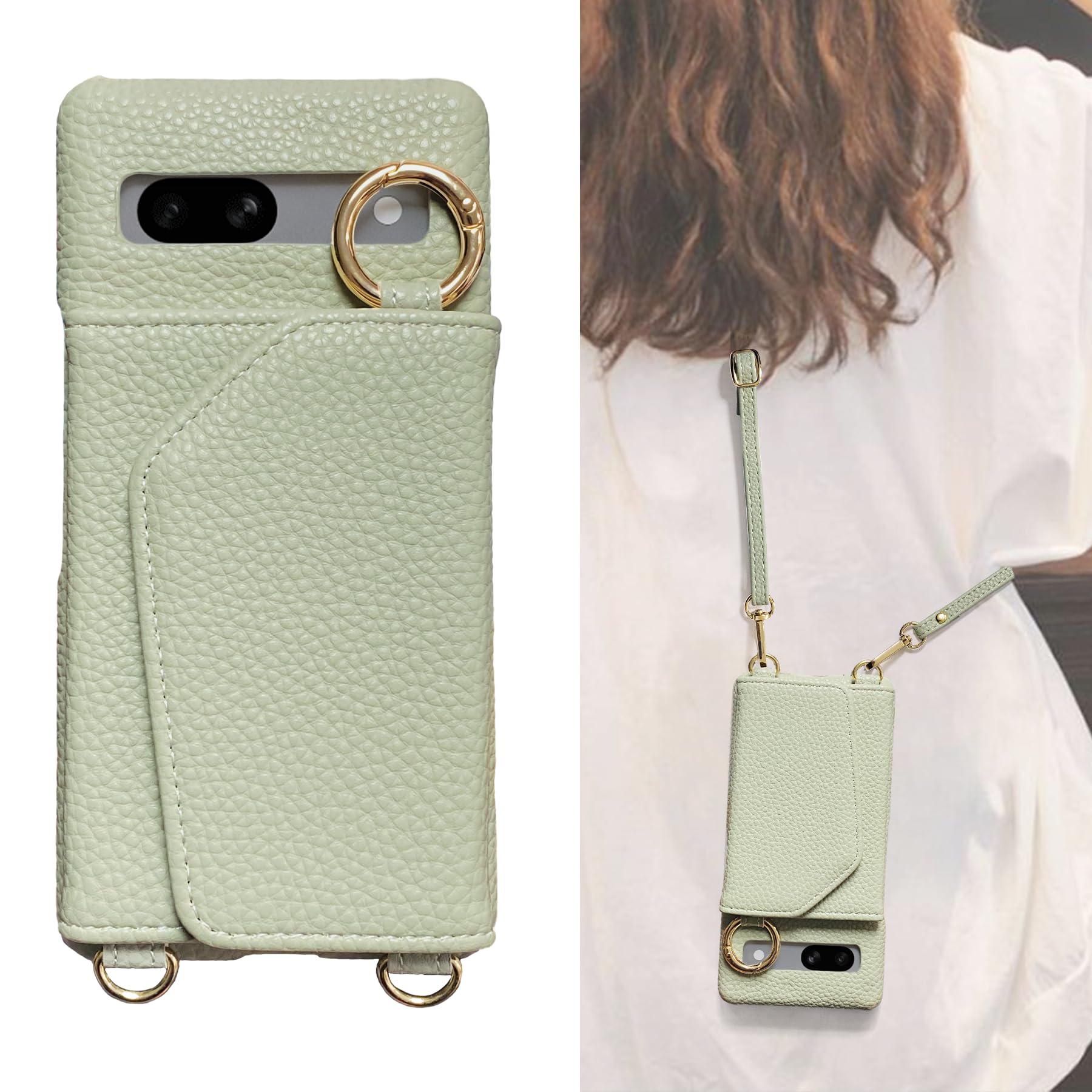(送料込)Google Pixel 7a ケース ショルダー カード収納 グーグルピクセル7a ケース 薄型 シンプル 韓国 おしゃれ Pixel 7a ケース 背面手帳型 ピクセル7a ケース 高級PUレザー 全面保護 耐衝撃 スタンド機能 ストラップ付き 肩掛け 斜め掛 首掛け ピーグリーン | デイリーメインベース