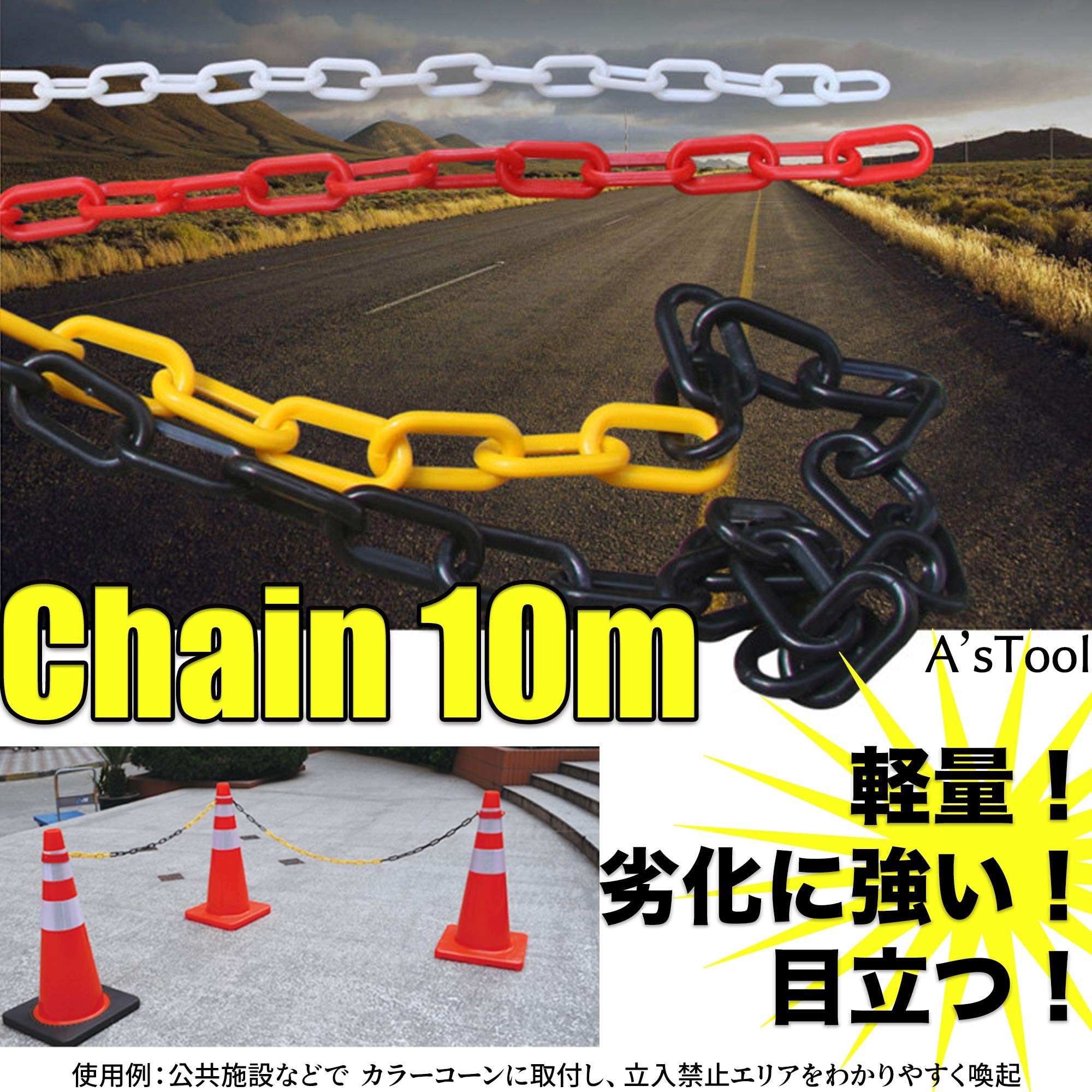 A'sTool プラスチックチェーン 侵入禁止 強化プラスチック 耐性 黒 黄色 白 赤 10m (黒色10m)