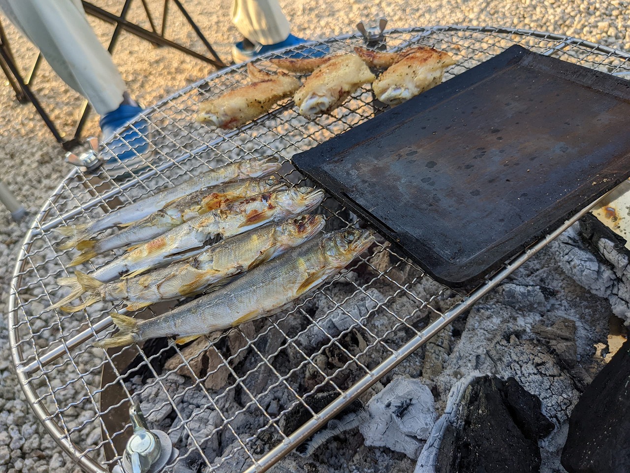 網を嵩上げすることで薪や炭が入れやすくなります。