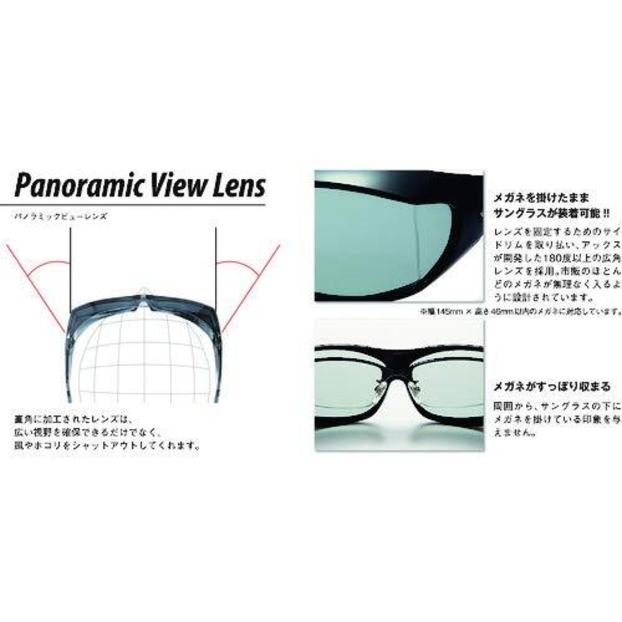 180度以上の視界が確保できるパノラミックビューレンズを搭載した、大型メガネの上からでも掛けられるオーバーグラスです。【用途】