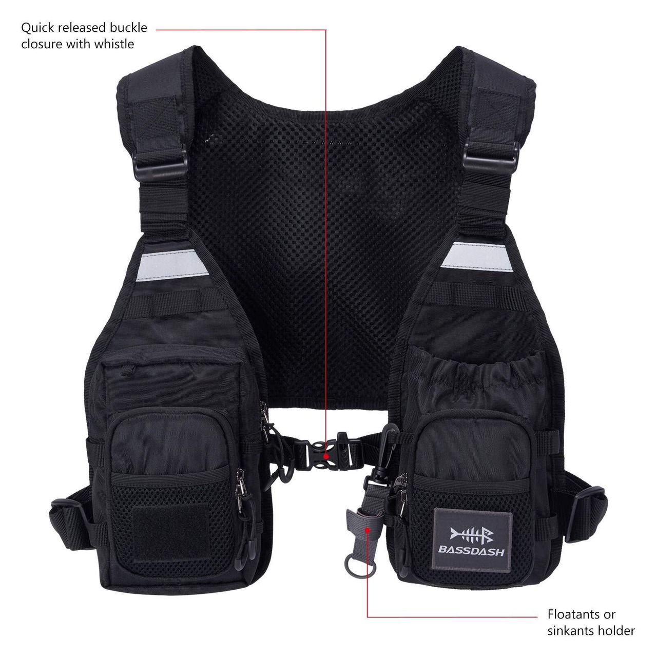 Bassdash バスダッシュ 釣りベスト 軽量 男女兼用 フィッシングベスト ショート丈 メッシュベスト FV08 (浮力体なし)