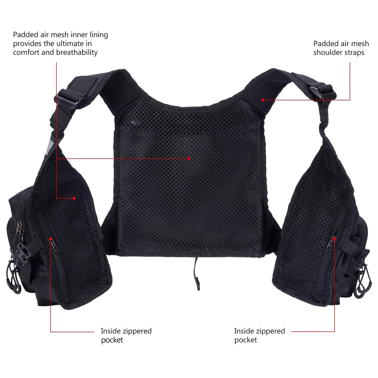 軽量ながら収納は大容量。10ポケットデザイン、ルアーケースが収納可能。プライヤーホルダーも装備。