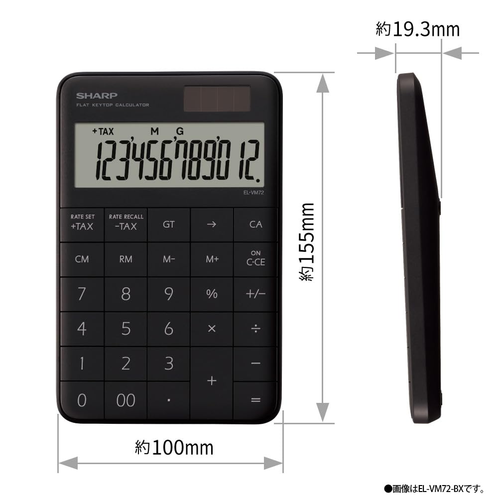 シャープ デザイン電卓 EL-VM72-WX ホワイト系 ミニナイスサイズタイプ 12桁 フラットフェースデザイン