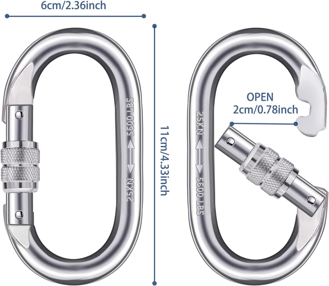 WANYOO カラビナ ロックカラビナ 25KN(2500kg) Oリング スリング 救援 トレーニング 牽引用 脱落防止