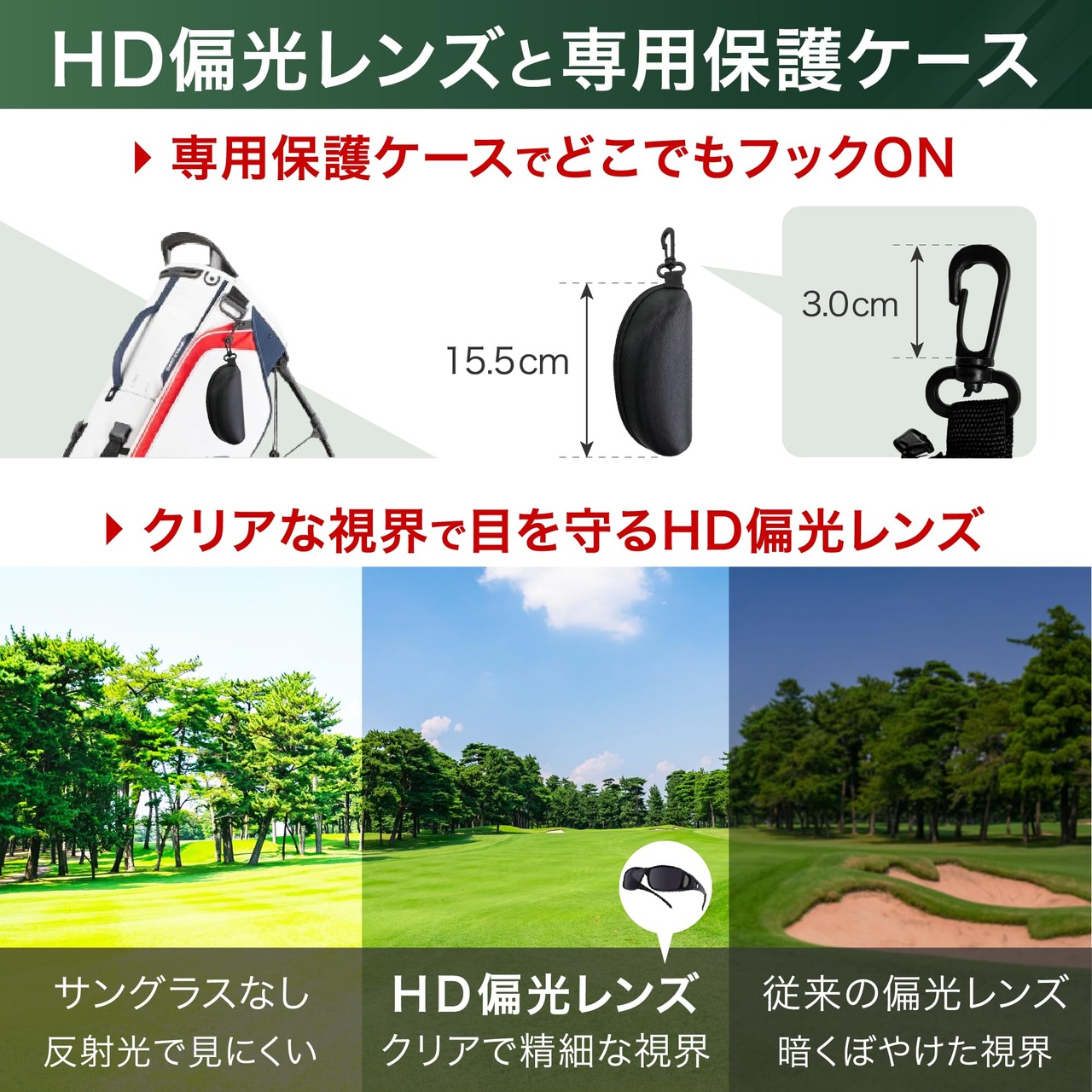 【高機能なHD偏光レンズ】偏光レンズは解像度が高く自然でクリアな視界を確保します。また、UVA・UVB・UVC等の有害光を99%カットするので目の保護にも最適です。