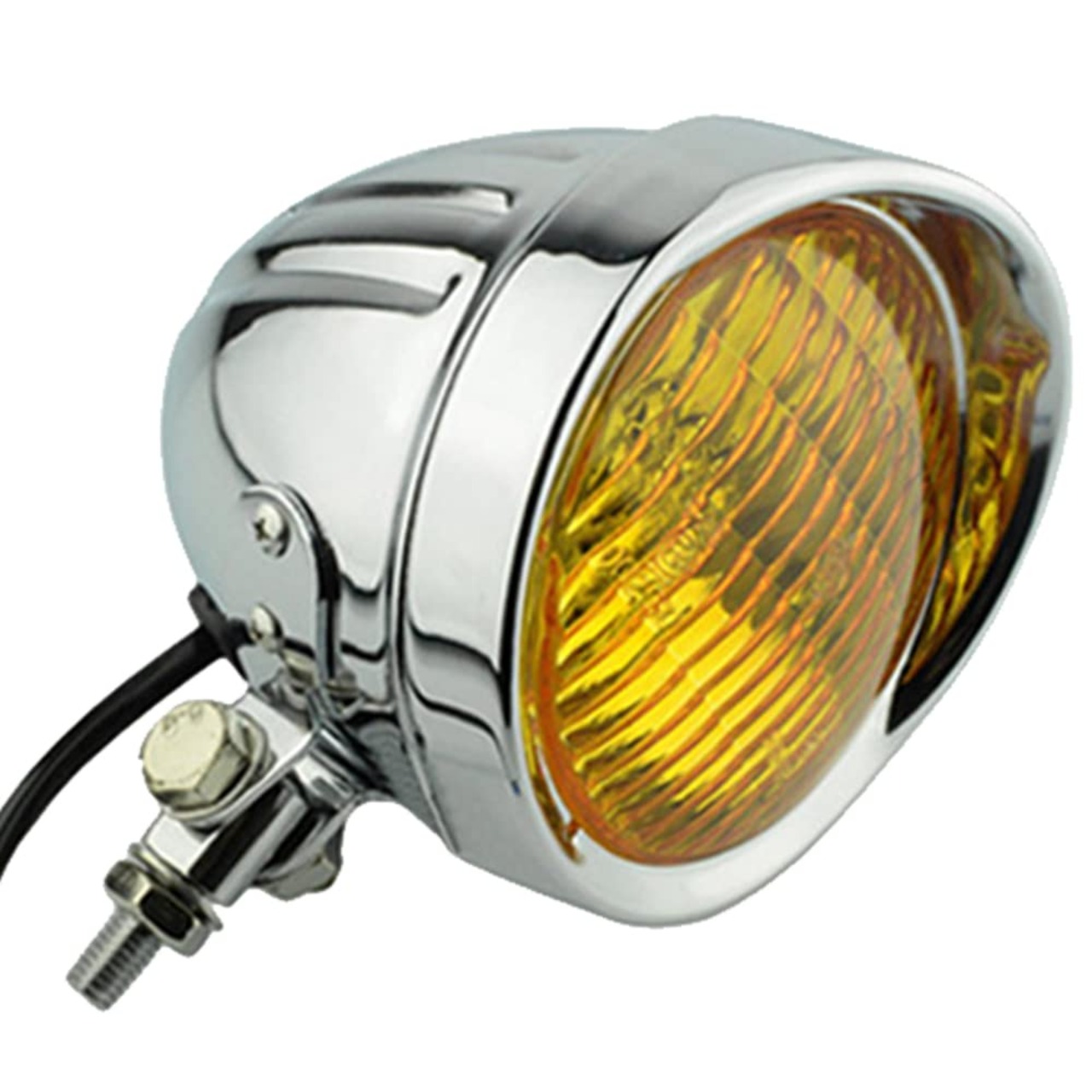 バイク オートバイ ベーツライト ヘッドライト バイザー付き 4.5インチ 汎用 (シルバー/イエローレンズ)