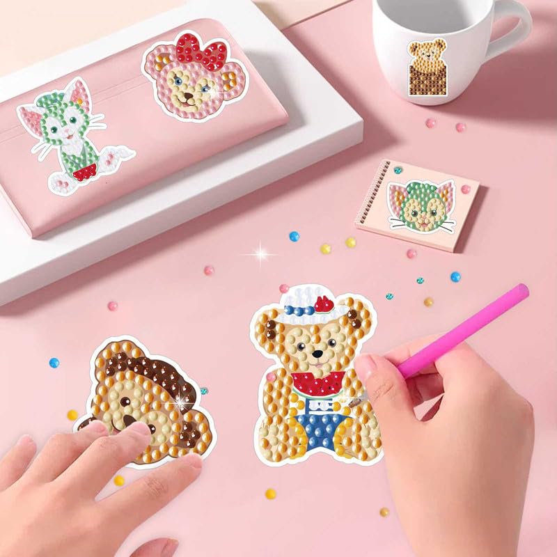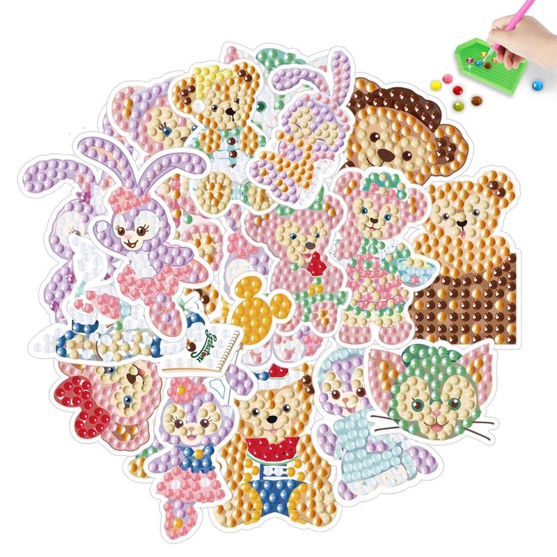 MEGZIHXN 5D DIYダイヤモンドアート ステッカー 子供用18枚入紫のウサギの子熊の子猿 ステッカー ペイント ダイヤモンド 数字によるキット アートクラフトセット 子供向け 男の子 女の子 初心者用