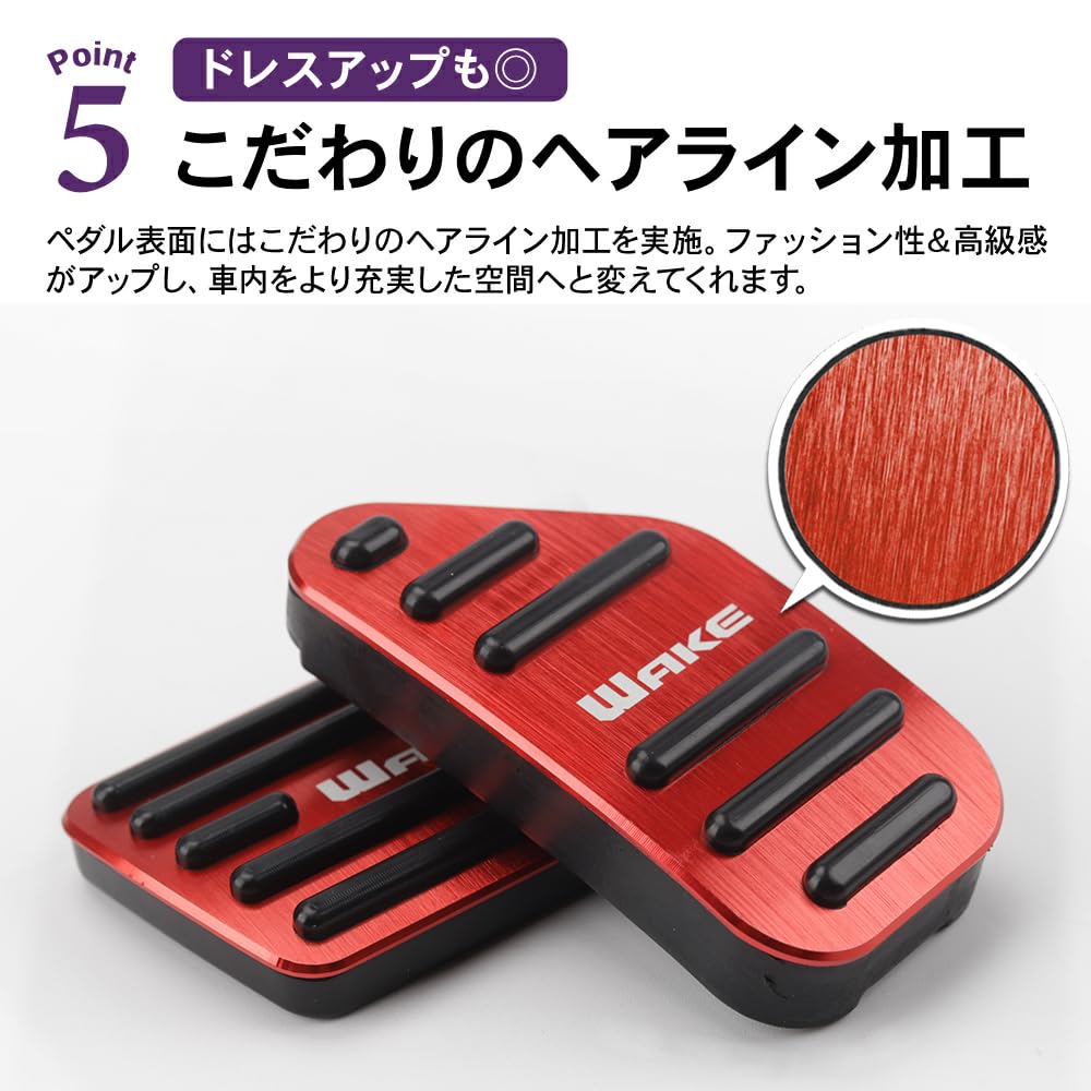SAWAKAKI ダイハツ ウェイク LA700S LA710S 専用設計 ロゴ付き アルミアクセルペダル ブレーキペダルカバー 2個セット(レッド)