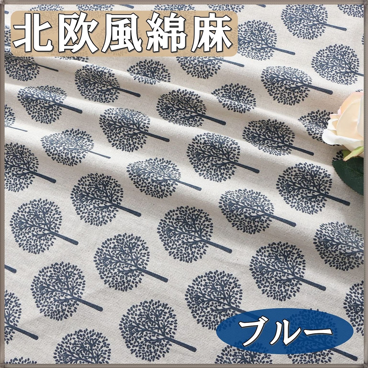 moonfarm 北欧風 ツリー柄 綿麻 生地 選べる3色 長さ約2m 幅約155cm 手芸用 布 (ブルー)