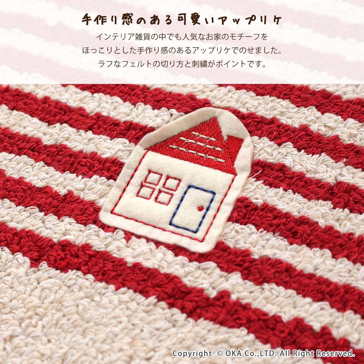 インテイリア雑貨でも人気な家モチーフを、ほっこりとした手作り感のあるアップリケで乗せました。