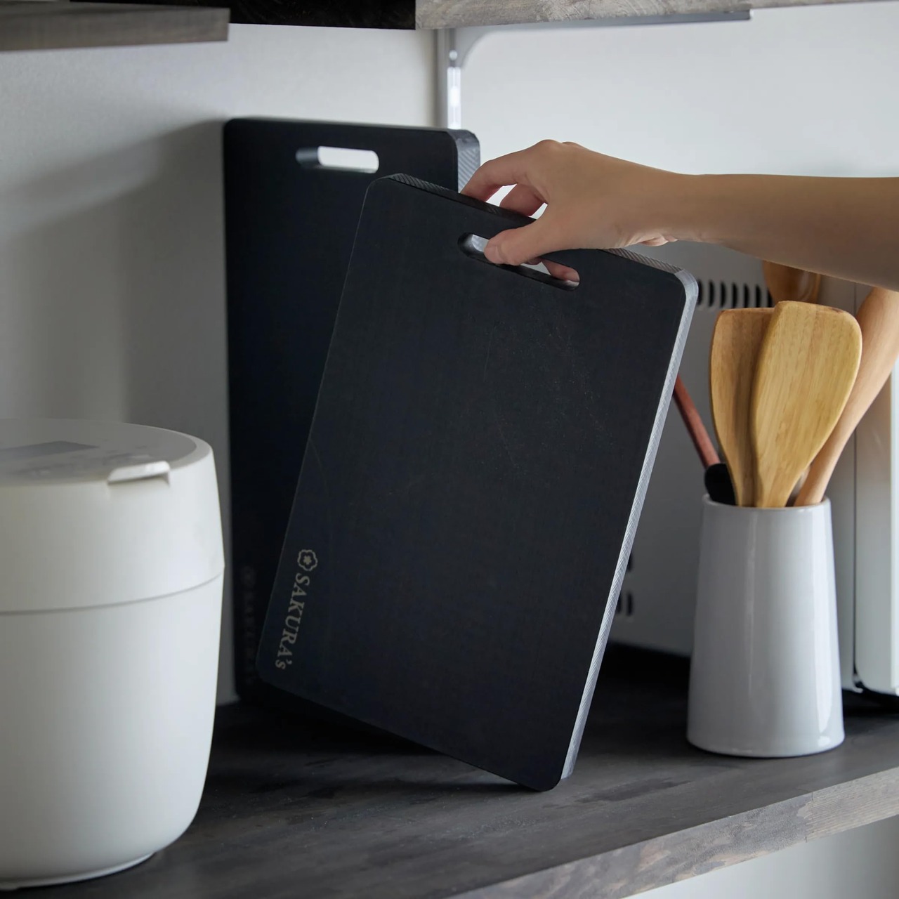 SAKURA's 食事処さくら監修 プロ仕様の黒いクッションまな板 切り心地が良くなる EVA樹脂製 滑らない弾力性 国内製造 (M(39×23×2cm))