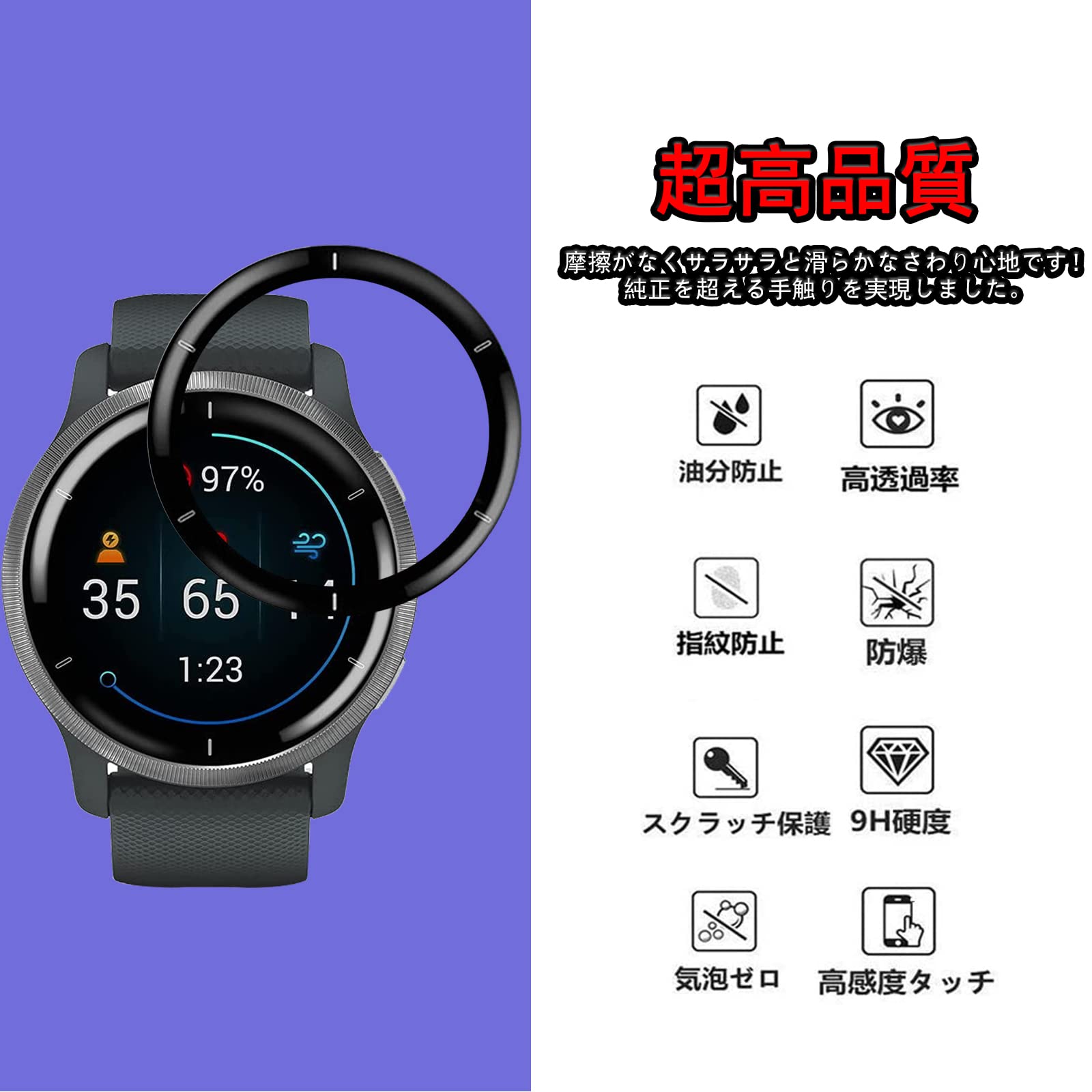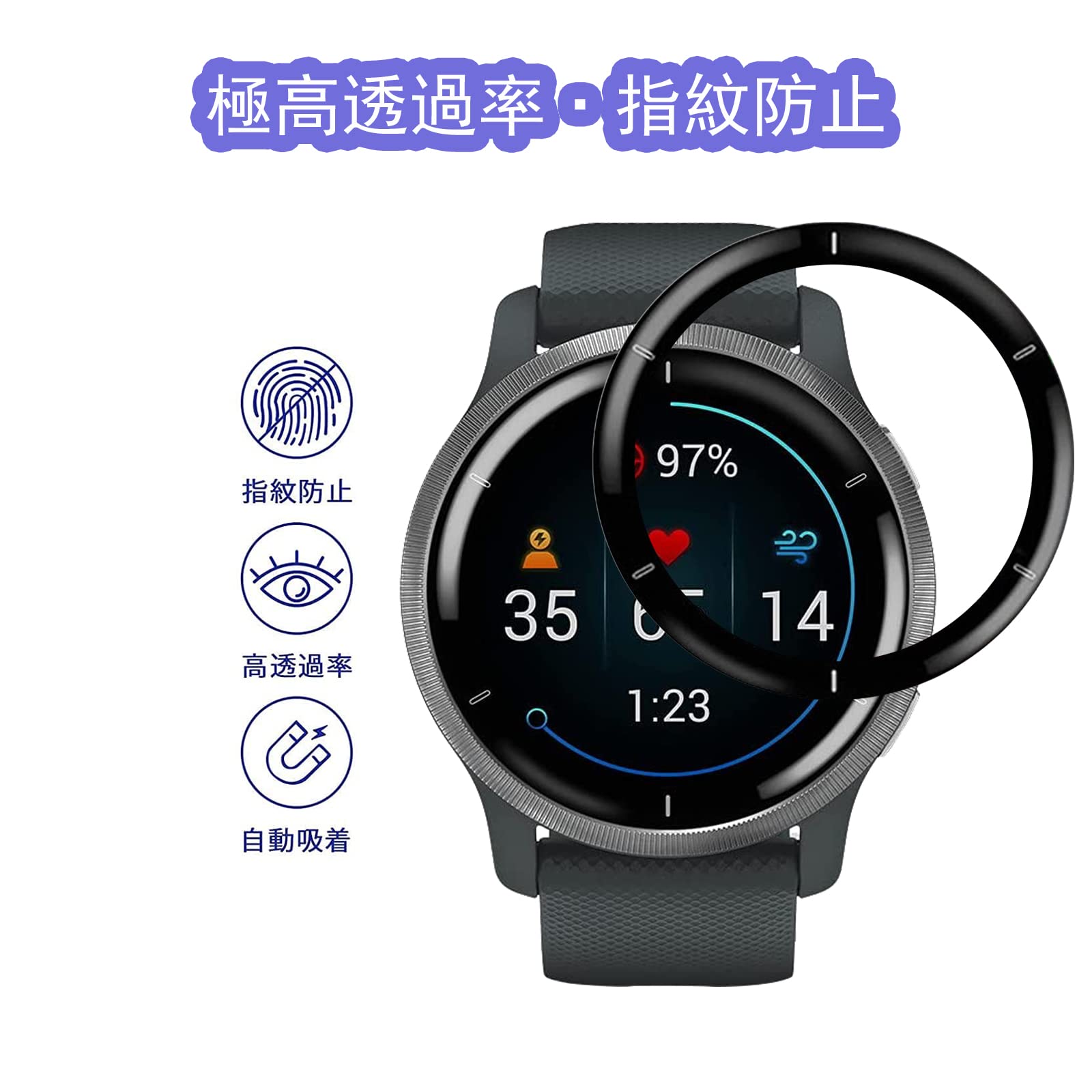 (送料込)【2 枚セット】 GARMIN Venu 2 用の フィルム 液晶 保護フィルム ケース PMMA+PC製素材 自動吸着 気泡ゼロ 指紋防止 3D曲面 GARMINVenu2 用の | デイリーメインベース