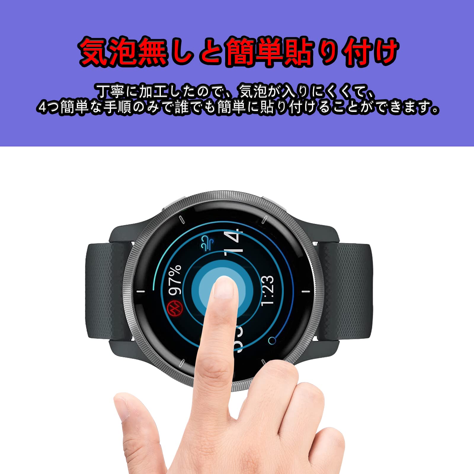 【高品質な保護フィルム】最新素材のポリメチルクライを採用して作たフィルム。優れ耐衝撃性だけでなく、柔らかくて丈夫で泡立ちにくいです。 エッジを衝撃しても強化ガラスのように割れることはなく、従来のTPU素材に比べて強度が高くて、スマートウォッチの傷を防ぎやすくなっています。強化ガラスやTPU素材に比べてもっと優れています。