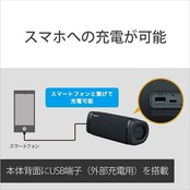 ■持ち運んでも安心して使えるロングバッテリー:5時間の充電でSTAMINAモード時には24時間再生(*1)、EXTRABASSモード時には14時間再生(*2)ができるバッテリーを内蔵。リビング、キッチン、お風呂はもちろん、ビーチやキャンプ、バーベキューなどに持ち運んでも、バッテリーを気にせず長時間使用できます。*1 サウンドモードをSTAMINAモード、Lighting Off時、音量は約半分で使用の場合。工場出荷時の設定からサウンドモード、Lightingを切り替える必要があります。切り替え方法は、取扱説明書やヘルプガイドでご確認ください。音量や再生楽曲、周囲の温度など使用状況により、記載の時間と異なる場合があります*2 サウンドモードをEXTRA BASSモード、Lighting On時(工場出荷時の設定)、音量は約半分で使用の場合。音量や再生楽曲、周囲の温度など使用状況により、記載の時間と異なる場合があります