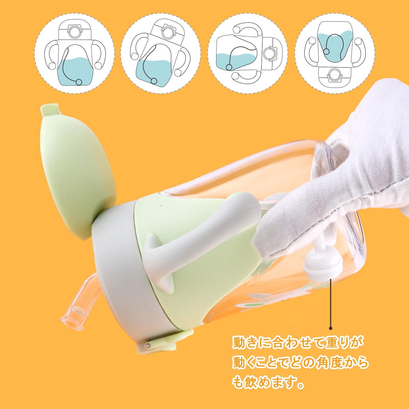 【どんな角度からも簡単に飲めるマグ】 ストローの先に重りが付いていて、傾きに合わせて動くので、どの角度からでも上手に飲むことができます。そのため体調が悪いときの水分補給などに役立ちます。本体は軽く、寝ころんだまま飲むことができるので、哺乳瓶からの移行もスムーズに。