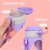 【シンプルでかわいいデザイン】 お出かけ便利な肩掛けショルダーベルト付きで、お子様が持ち運びはとっても便利です。やわらかいシリコンゴム製のストローなので喉突き事故の心配もありません。ボトルに60ml~300mlの目盛りが付いているので飲んだ量が一目で分かります。また、分解・組み立てが簡単ですぐに取り外せて洗うのも簡単です。キャップユニットは扱いやすいワンタッチオープン式で、ボタンを押すだけで水を吸うことができます。フタを開けたときの水滴飛び散り防止機能も搭載しております。また、ロック機能が付いているため、ボトルから中身が漏れないのでバッグに入れても漏れる心配がなく安心してご使用になれます。