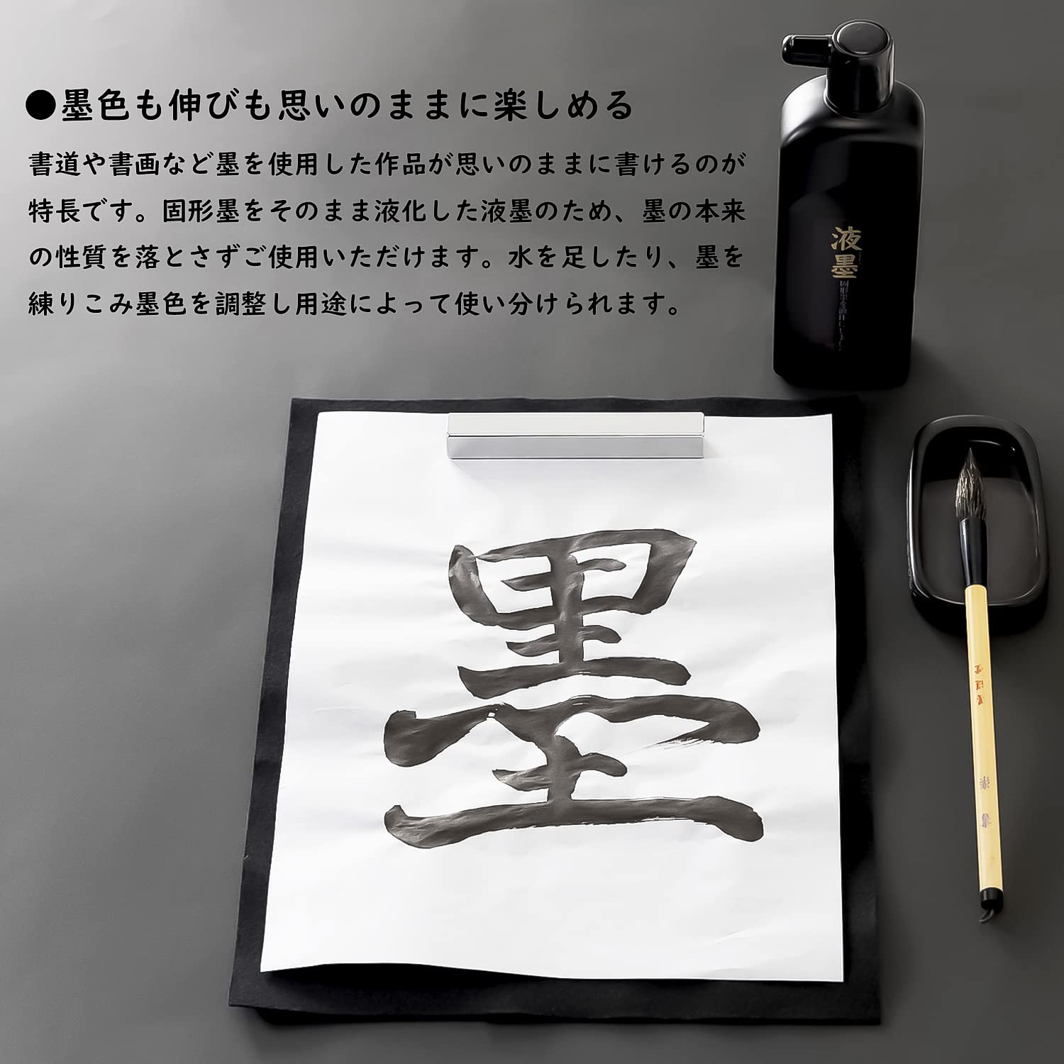 固型墨と同様運筆が軽く、筆の開閉が自在。