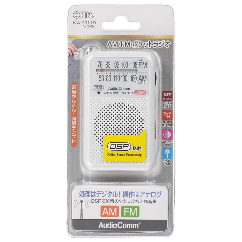 (送料込)オーム(OHM) 電機AudioComm ポケットラジオ AM/FM ホワイト RAD-P211S-W 03-0974
