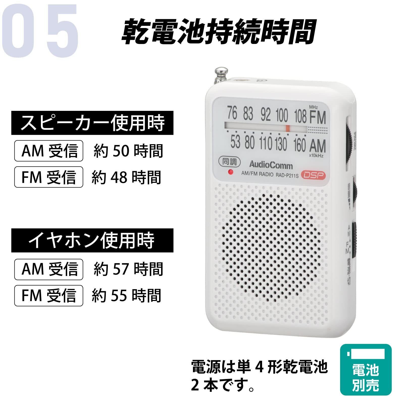 オーム(OHM) 電機AudioComm ポケットラジオ AM/FM ホワイト RAD-P211S-W 03-0974